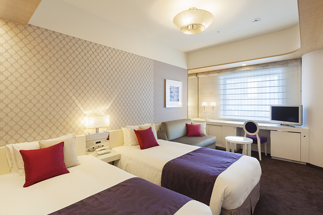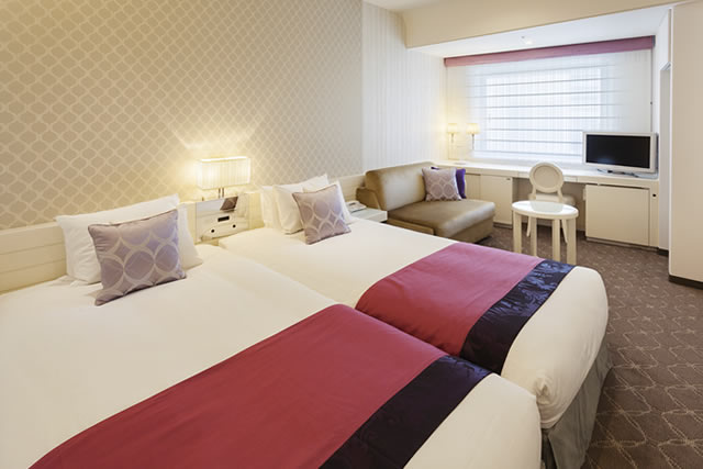ツインベッドを2つ合わせ、広い空間を演出した客室です。 カップルやお子様連れの方にもご利用いただけます。